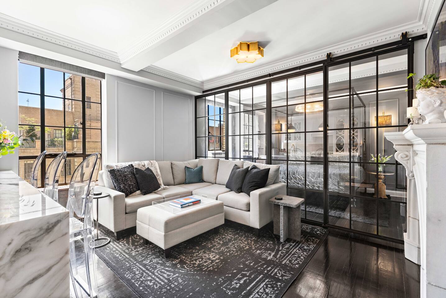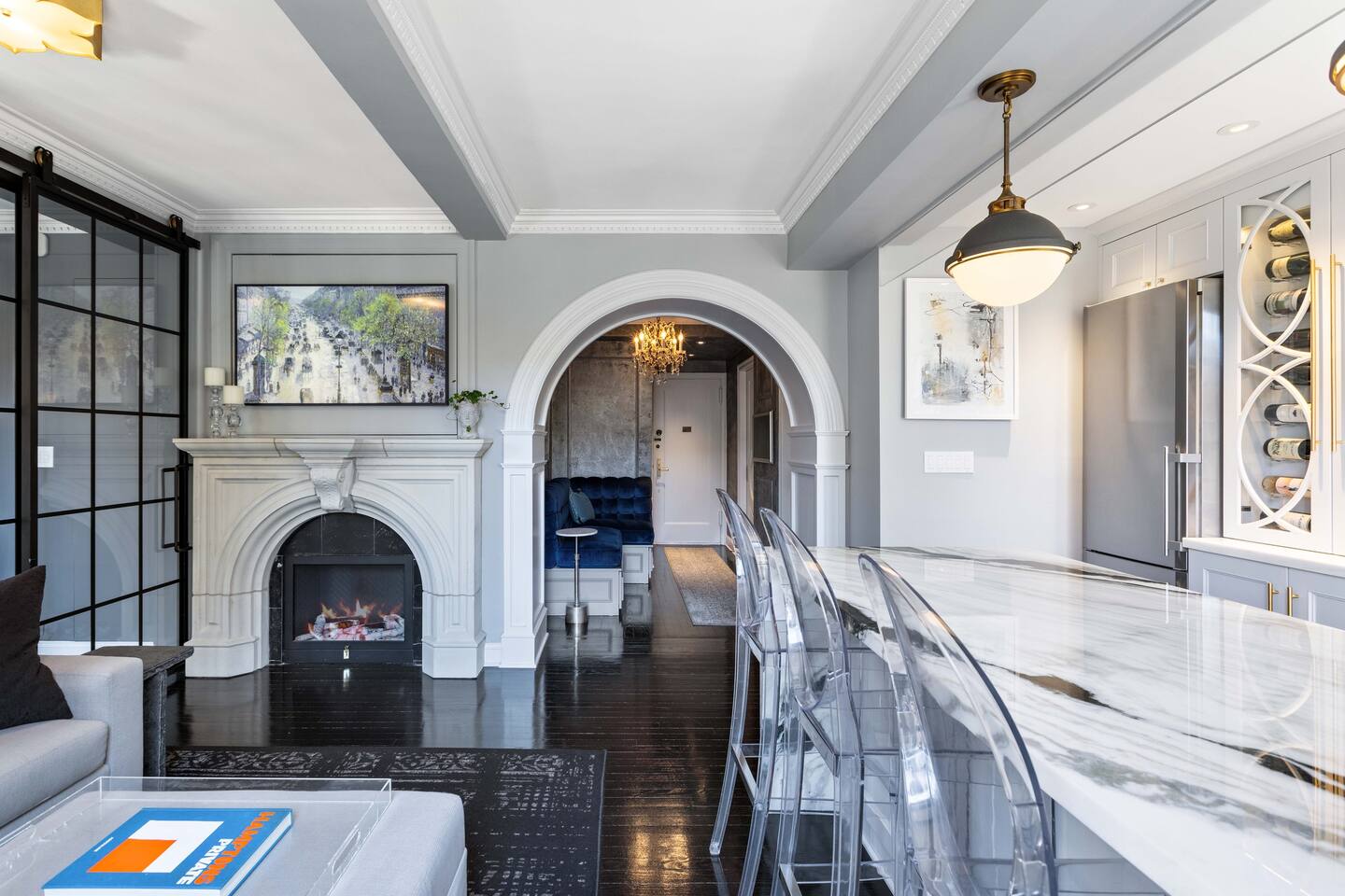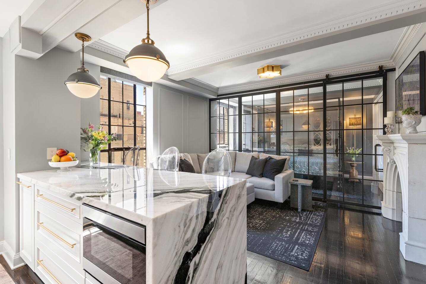 The 2021 extensive renovation left no stone unturned, infusing this home with upscale finishes, exquisite furnishings, and intelligent space optimization. An awe-inspiring Hearth fireplace graces the living room, featuring a sleek black marble surround. The generous bedroom accommodates a king-sized bed and boasts a custom glass partition that pays homage to the original 1931 windows. The expansive open-concept kitchen showcases a panda marble waterfall island, pentelikon marble countertops and backsplash, and bespoke wine storage for 12+ bottles. Premium appliances include a Liebherr refrigerator, Fulgor Milano range & microwave drawer, and a concealed Miele dishwasher. The bathroom is equally lavish, with panda marble accents contrasting elegantly with black and white marble details. The bedroom features an 8' closet, a bookcase niche, and a concealed panel closet complete with laundry hampers and three pull-out shelves. A walk-in closet with a full-length mirror awaits off the foyer. Discover even more concealed storage throughout, from the custom TV cabinet and toe-kick drawers in the kitchen to the compartments under the velvet lounge in the entryway. Smart Home, Effortless Living: * August Wi-Fi lock: Lock or unlock the door for guests from your phone, or double-check that you locked the door this morning. * Kasa smart outlets: Manage bathroom outlets remotely, ensuring peace of mind when you wonder if you left your curling iron on. * Lutron/Caseta lighting and window shades: Craft custom themes like “movie night” or schedule lights to brighten and shades to rise at 6:30 every morning. * Samsung Frame TVs: Two Samsung Frame TVs double as captivating art pieces when not in use. Restoration Hardware lighting, custom built cabinetry, restored radiators, simply too much to list!
