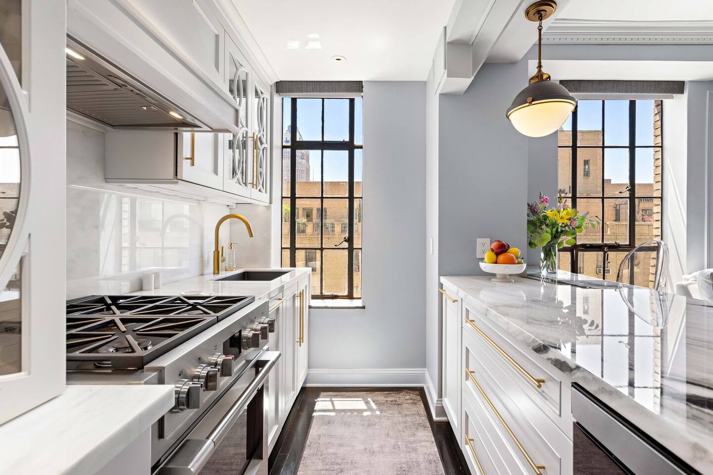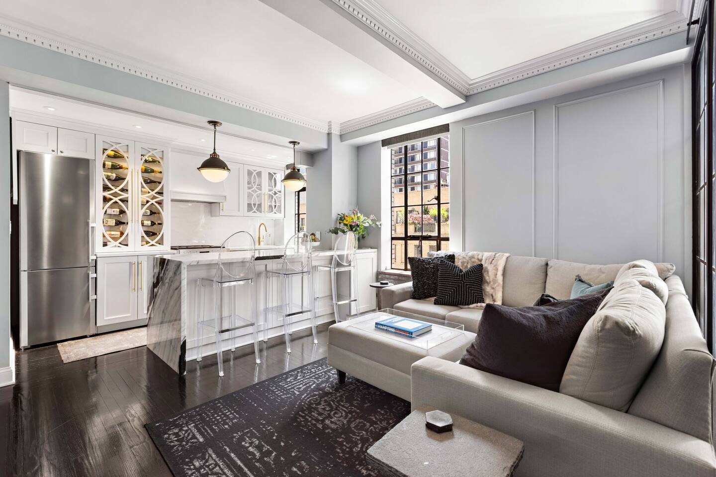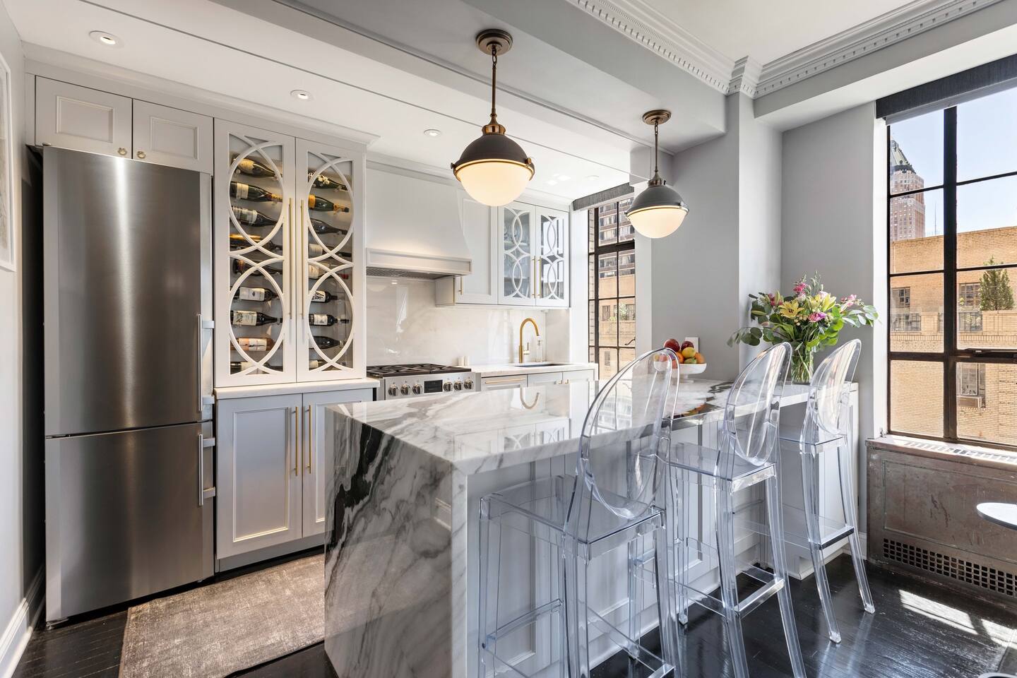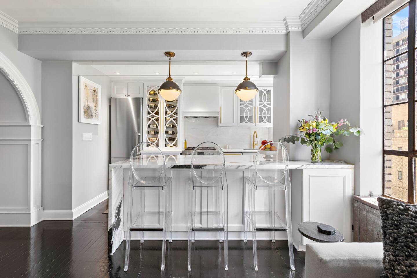 The 2021 extensive renovation left no stone unturned, infusing this home with upscale finishes, exquisite furnishings, and intelligent space optimization. An awe-inspiring Hearth fireplace graces the living room, featuring a sleek black marble surround. The generous bedroom accommodates a king-sized bed and boasts a custom glass partition that pays homage to the original 1931 windows. The expansive open-concept kitchen showcases a panda marble waterfall island, pentelikon marble countertops and backsplash, and bespoke wine storage for 12+ bottles. Premium appliances include a Liebherr refrigerator, Fulgor Milano range & microwave drawer, and a concealed Miele dishwasher. The bathroom is equally lavish, with panda marble accents contrasting elegantly with black and white marble details. The bedroom features an 8' closet, a bookcase niche, and a concealed panel closet complete with laundry hampers and three pull-out shelves. A walk-in closet with a full-length mirror awaits off the foyer. Discover even more concealed storage throughout, from the custom TV cabinet and toe-kick drawers in the kitchen to the compartments under the velvet lounge in the entryway. Smart Home, Effortless Living: * August Wi-Fi lock: Lock or unlock the door for guests from your phone, or double-check that you locked the door this morning. * Kasa smart outlets: Manage bathroom outlets remotely, ensuring peace of mind when you wonder if you left your curling iron on. * Lutron/Caseta lighting and window shades: Craft custom themes like “movie night” or schedule lights to brighten and shades to rise at 6:30 every morning. * Samsung Frame TVs: Two Samsung Frame TVs double as captivating art pieces when not in use. Restoration Hardware lighting, custom built cabinetry, restored radiators, simply too much to list!